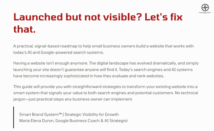 A practical, signal-based roadmap to help small business owners build websites that work with today's AI and Google-powered search systems. This guide will walk you through why most