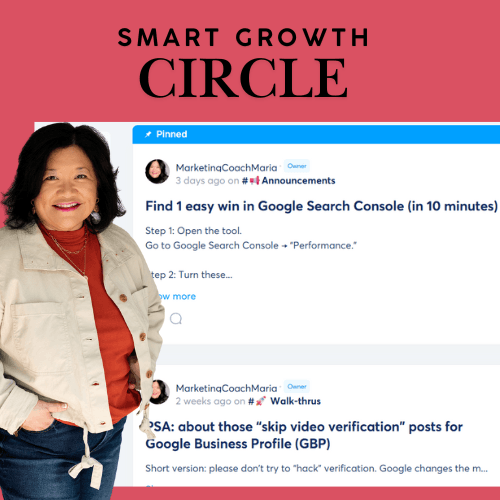 Known for her engaging, practical workshops, Maria Elena delivers high-energy sessions packed with real-world tactics that help local service providers, brick-and-mortar businesses, and online brands stand out, attract the right customers, and grow sustainably.